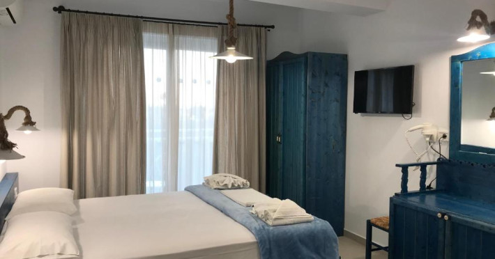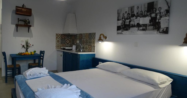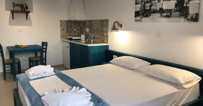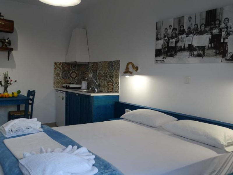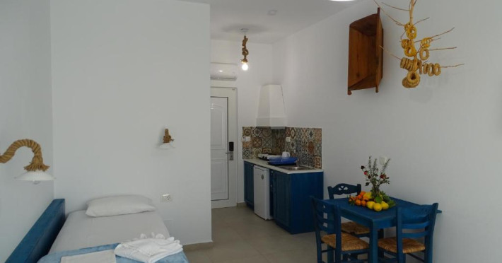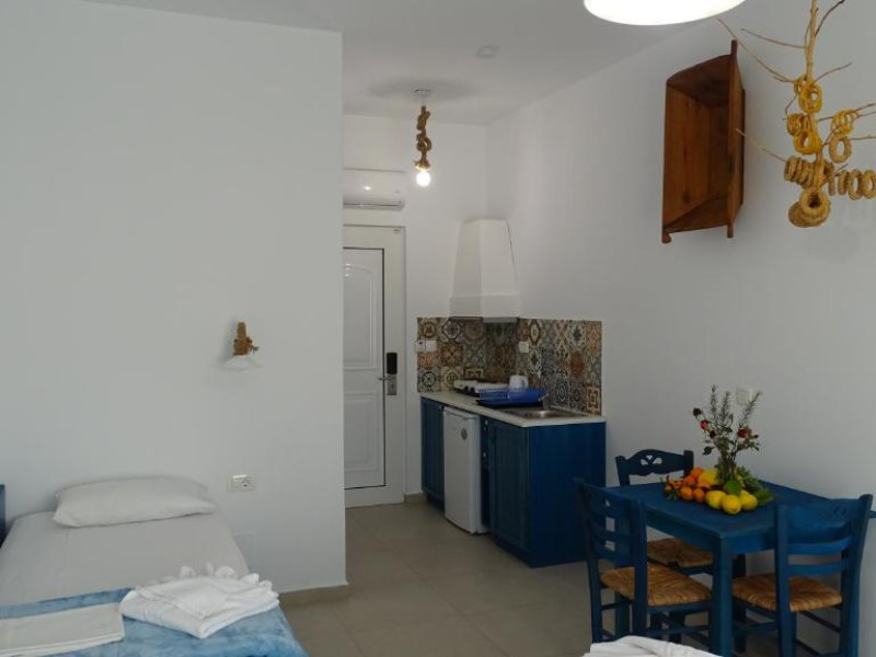 Toate unitățile de cazare de la Filoxenia au chicinetă cu facilități de gătit și frigider, precum si baie privată cu dus. Fiecare dintre ele are baie privată cu duș. Unele unități au dormitor separat și baie suplimentară. Pentru utilizarea aerului condiționat și a cutiei de valori se percepe un cost suplimentar.