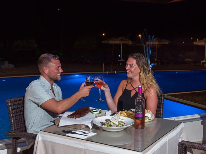 Dotari camere Hotelul detine 48 de camere modern si confortabile, toate dotate cu baie private cu dus, aer conditionat, seif, televizor cu ecran plat si programe prin satelit, frigider, telefon cu linie directa, fierbator electric, uscator de par, balcon cu vedere la gradina, mare sau piscina.