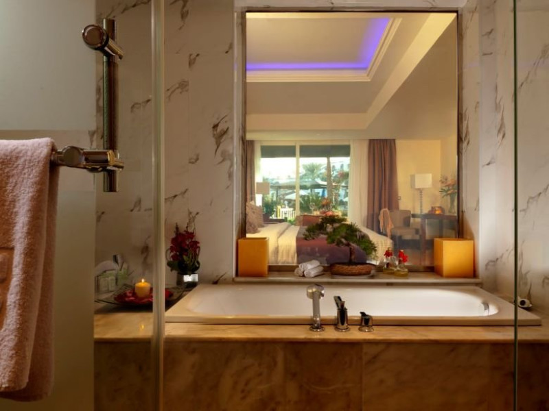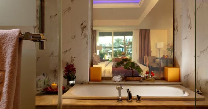 -Sea/Pool/Garden View Rooms 45mp:cu vedere spre mare, piscina sau gradina acest tip de camera dispune de pat king size sau doua paturi twins. Capacitatea maxima de doi adulti si un copil