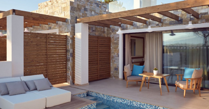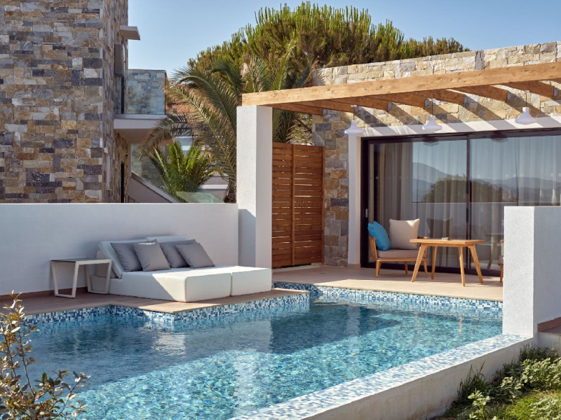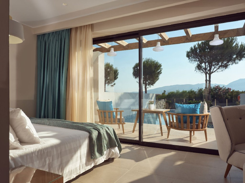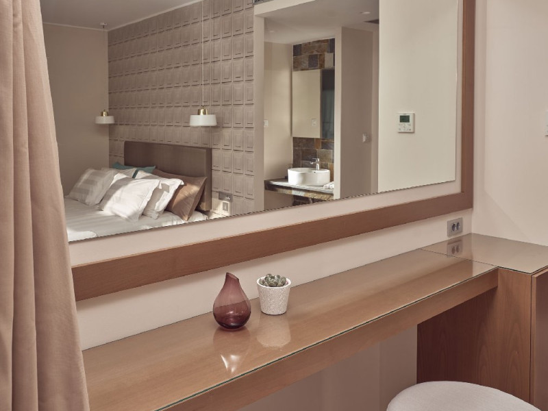 Facilitati camere: 160 camere dotate cu balcon, pat matrimonial sau twin, TV, telefon, aer conditionat (gratuit), seif (gratuit), Wi-Fi (gratuit), frigider (gratuit), baie cu cada sau dus, uscator de par. Patutul pentru infant este gratuit si se ofera la cerere, cu confirmare inainte de check-in. 16 suite de lux au 34 mp au piscina privata iar alte 4 camere situate la etaj superior au jacuzzi propriu, in plus dispun de: posibilitatea de a prepara ceai/cafea in camera, fier de calcat si masa de calcat (la cerere), cana electrica, halate si papuci de baie, majoritatea camerelor au vedere la gradina.
