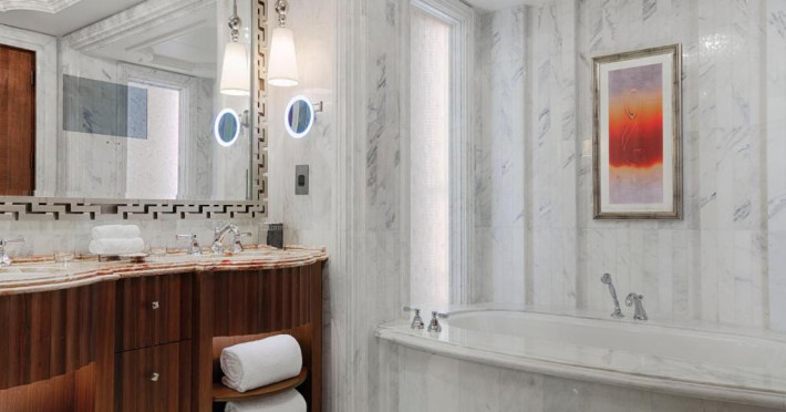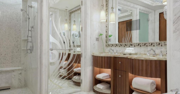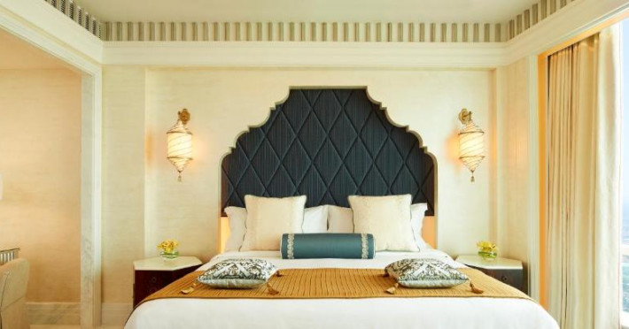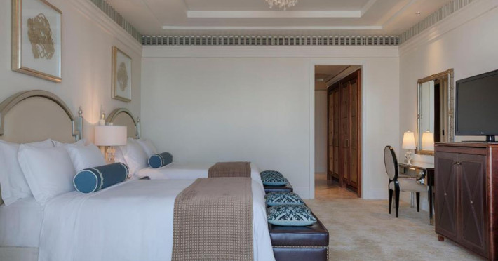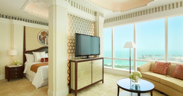 Toate cele 283 de camere si suite ale hotelului au vedere magnifică la Cornisă. Suita Abu Dhabi, situată pe pasarela suspendată, intre cele 2 turnuri Nation, incantă oaspeții cu vederea uimitoare de 360º. Serviciul de majordom marca St. Regis este gratuit pentru toti oaspetii hotelului.